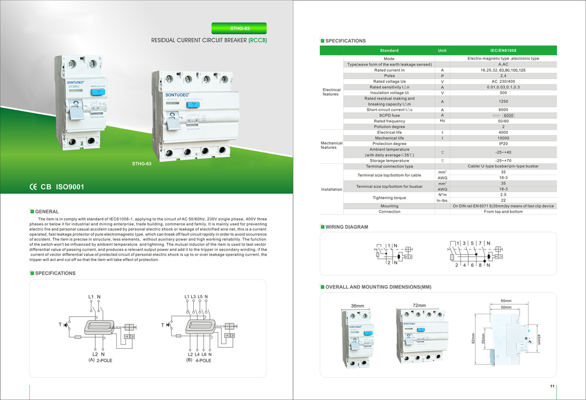 A SONTUOEC az egyik kínai beszállító/gyártó, amely különféle kisméretű elektromos készülékek gyártására szakosodott. Az ST264J AC50 / 60HZ kétpólusú 230V, négypólusú 400V, névleges árama 63A-ig, automatikusan és azonnal meg tudja szakítani az áramellátást, ha valaki áramütést vagy szivárgást szenved. Hatékonyan védheti a személyes biztonságot és elkerülheti a berendezés károsodását. A hibaáram-megszakító túlterhelés- és rövidzárlat-védelemként, valamint normál körülmények között gyakori vezetékváltásként is működhet. A termék alkalmas ipari, üzleti, építőipari, lakóhelyi stb. Megfelel az IEC61008-1 szabványnak.