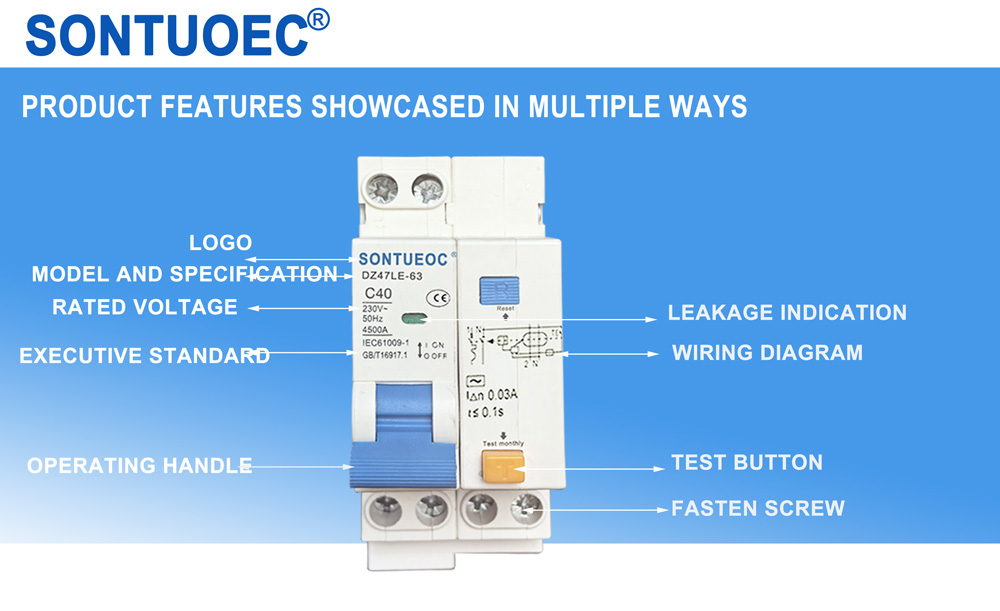 A SONTUOEC az egyik kínai beszállító/gyártó, amely különféle kisméretű elektromos készülékek gyártására szakosodott. A DZ47LE 50/60 Hz-es AC 50/60 Hz névleges feszültségű 230 V-os vonalra alkalmazható, egypólusú, kétvezetékes, 2 pólusú 4 pólusú vagy 400 V-os vezetéknél. 4 pólusú és névleges áramerősség 63A-ig. Megvédheti a vezetéket és a motort a túlterheléstől és a rövidzárlattól. Ritka vonalátalakításra és ritka motorindításra is használható. Megfelel az IEC61009.1 szabványnak.