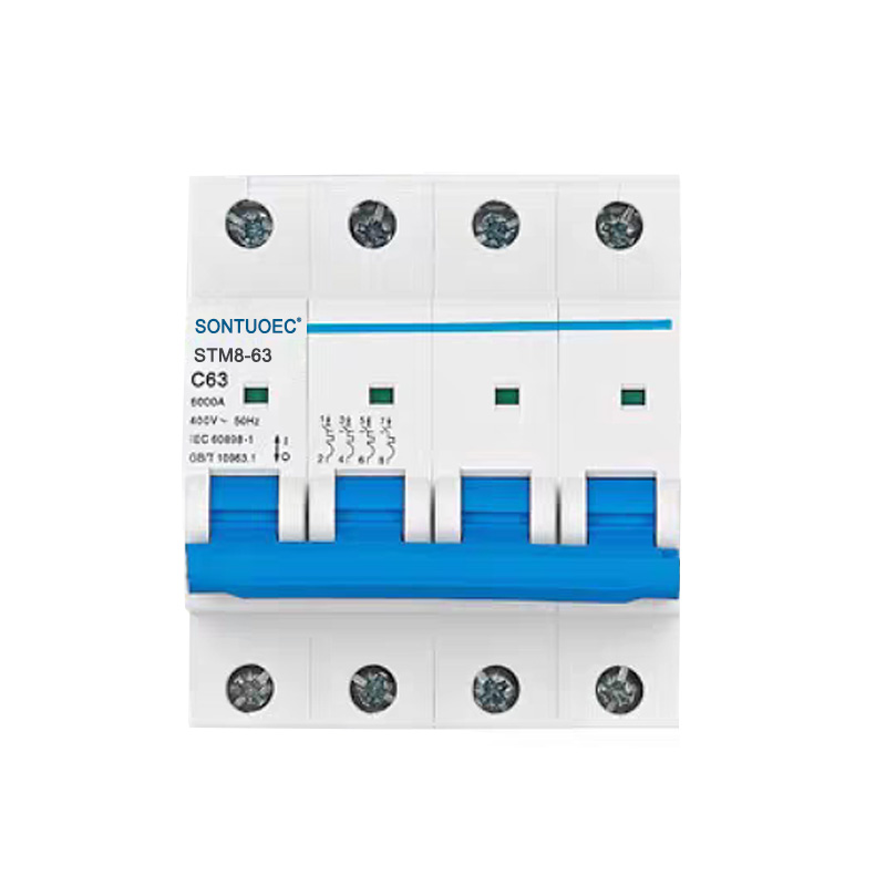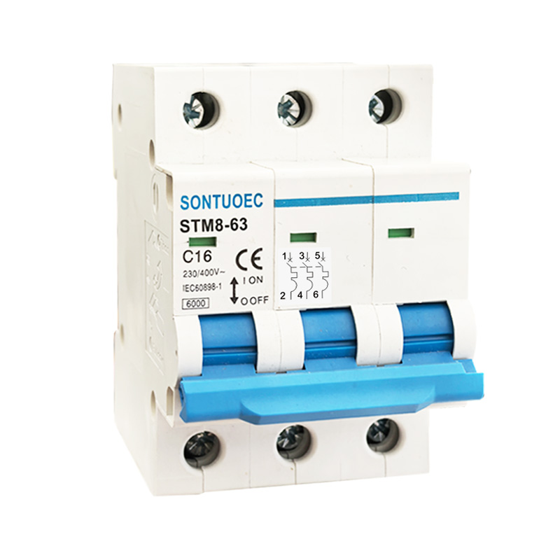 SONTUOEC is one of the Chinese suppliers/manufacturers specializing in the production of various small electrical appliances Stm8-63 Miniature Circuit Breaker 6ka 1p 2p 3p 4p 16A 230/400V has the features of structure advanced, performance reliable, breaking capacity high, appearance elegant and its shell and parts are made of material with impact resistance, strong flame-retardant feature. It is suitable to power system of AC 50/60Hz, rated voltage of 230/400V, and rated current up to 63A. It is mainly applied at office building, residence, for lighting, power distribution and overload and short circuit protection of equipment. Normally, it also can be used as the not frequent transfer of power system. It conforms to the standards IEC60898-1.